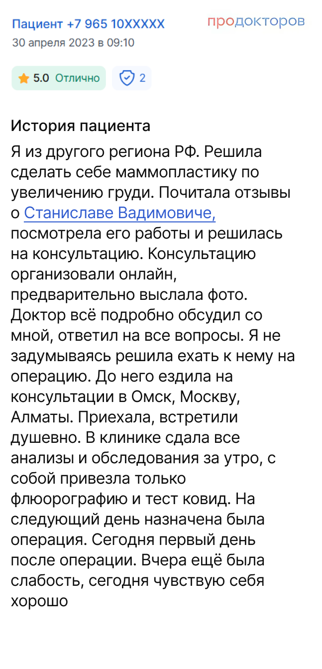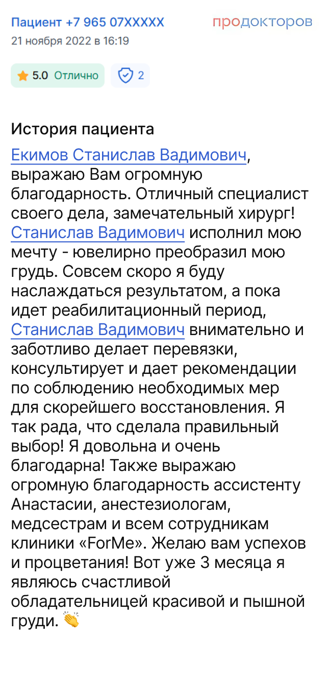 | Операция пластического хирурга Екимова С.В |